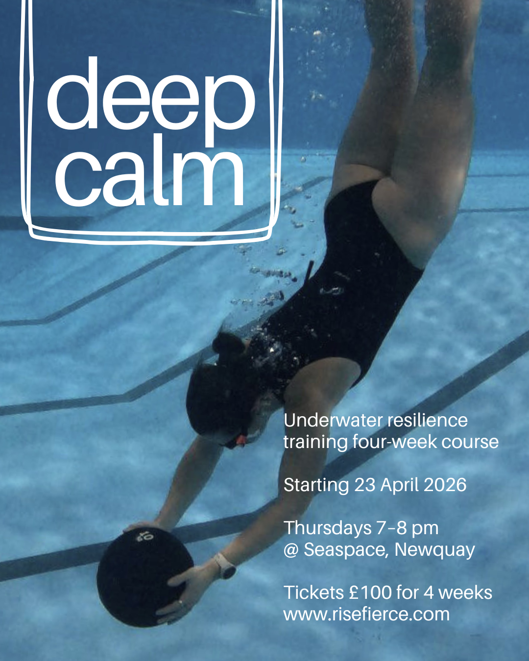 Across four Thursday evenings (23, 30 April, 7, 14 May | 7–8 pm), you’ll explore the fundamentals of underwater training and breathwork in a progressive, immersive way. Each session builds on new skills and strategies to help you calm your nervous system, improve swimming efficiency, and increase your tolerance to stress.
